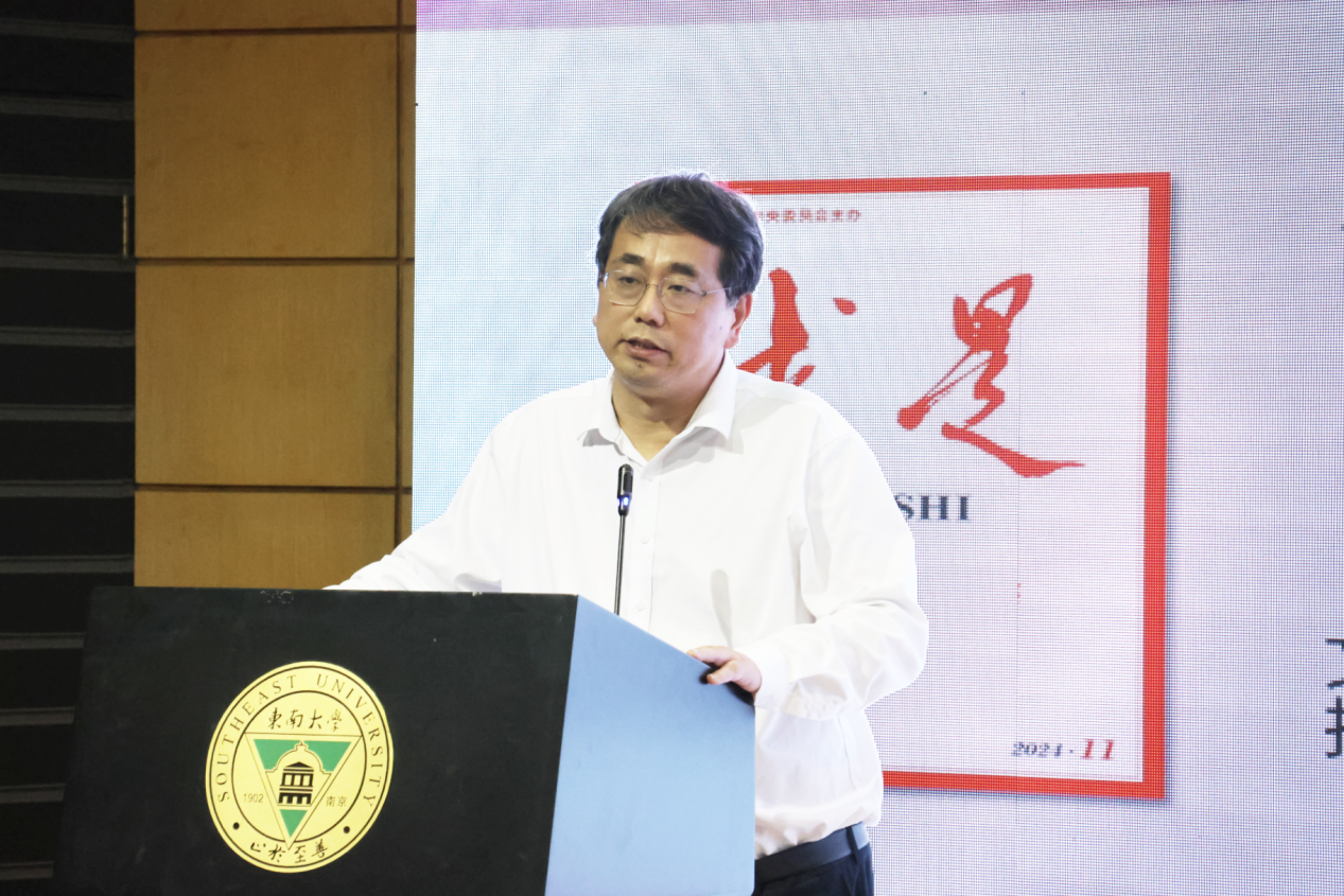 东南大学社会科学处处长王禄生在致辞中对各位领导和专家表示热烈欢迎,衷心感谢大家长期以来对东南大学社会科学研究的支持与贡献。他介绍了东南大学的学科建设特色与成果,并特别指出了在2024东南大学“学术年”的背景下社科处推出的文科科研十项举措。他强调,“新文科名家讲坛”活动是这一系列举措中的重要组成部分,充分响应学术年“数字+”“AI+”“未来+”的总体部署,旨在加强新兴学科、交叉学科建设,打造社会科学知名学术品牌。他希望,全校师生能够积极参与到东南大学“新文科名家讲坛”活动中来,与各位专家学者共话学术、共谋发展,保持持续紧密的交流与合作。