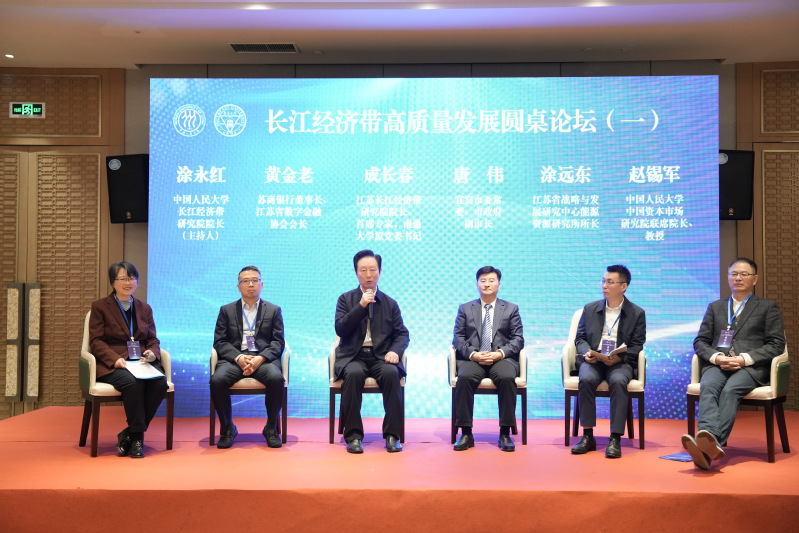 会议第二阶段,宜宾市委常委、市政府副市长唐伟,江苏长江经济带研究院院长、首席专家、南通大学原党委书记成长春,江苏省战略与发展研究中心能源资源研究所所长涂远东,苏商银行董事长、江苏省数字金融协会会长黄金老,中国人民大学中国资本市场研究院联席院长赵锡军教授参与长江经济带高质量发展圆桌论坛(一)讨论。