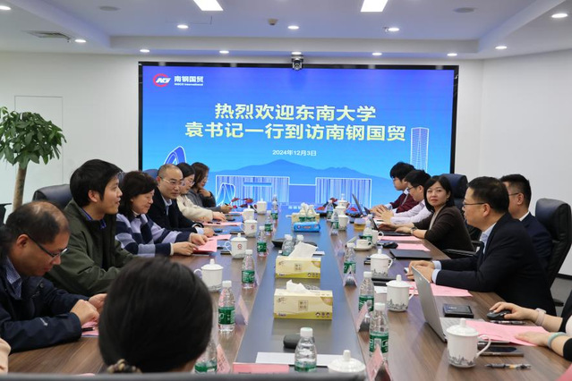 南京钢铁集团总裁助理兼国际经济贸易公司总经理李超向bet365亚洲官网 师生一行的到来表示热烈欢迎,向师生介绍了南钢集团以及南钢国贸公司历史、发展理念、bet365亚洲官网。党支部书记、副董事长陆兆勇详细介绍了南京钢铁集团国际经济贸易公司的具体发展情况,强调南钢与东南大学的人才合作和互惠互助的关系。交流会上,南京钢铁集团总裁助理、南钢国贸公司总经理李超讲述了南钢国贸的数字化、智能化转型实践和相关举措,公司将与东南大学携手,通过理念互通、资源共享,共同探索复合型人才培养的新模式,为企业注入新鲜血液,实现互惠互利、共同发展。