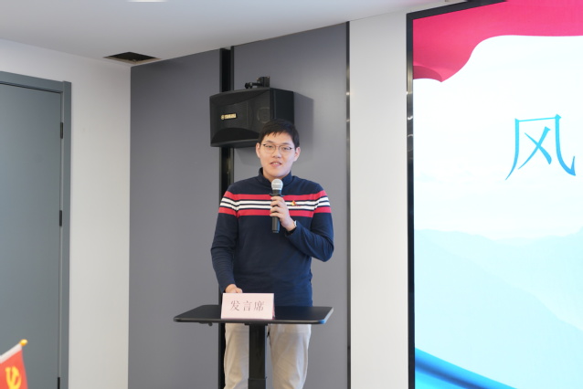 硕士生金融厚德党支部书记钟政以“风雨兼程,勇立潮头”为题讲授主题党课,结合当前国际国内经济形势,号召青年党员坚定理想信念、厚植家国情怀,将专业学习融入国家发展战略,在服务实体经济中体现青春作为。