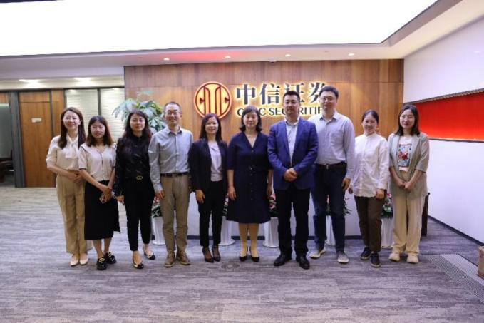 In the end, accompanied by Xie Siyuan, general manager of Jiangsu Branch, Secretary Yuan Jianhong and other officers visited the company's office area and honor wall, and further understood the development background, vision, and mission of CITIC Securities and the regional development characteristics of Jiangsu Branch.