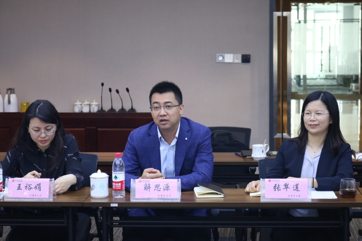 Secretary Yuan Jianhong emphasized the necessity of pre-positioning and normalizing employment guidance and pointed out that the goals of both parties are highly compatible in cultivating practical financial talents with cross-compound thinking. He Yi, Deputy Secretary of the Party Committee and Deputy Dean of the School of Economics and Management, introduced the current student employment situation. He said that he hoped to establish a long-term cooperation mechanism between schools and enterprises through the implementation of the "Summer Internship Cooperation Plan", to improve the suitability of students' career selection and job requirements. Vice Dean Pu Zhengnin listed financial campus activities such as the "Dongxin Cup" simulated stock trading competition and proposed that the two sides could carry out substantial exchanges and cooperation on linked teaching resources in the future, so as to provide students with more diversified practical opportunities.